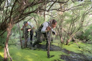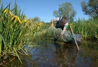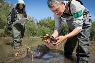 Philippe capturing a Lestes macrostigma while monitoring the species in a temporary pond in the Regional Nature Reserve of the Tour du Valat