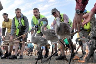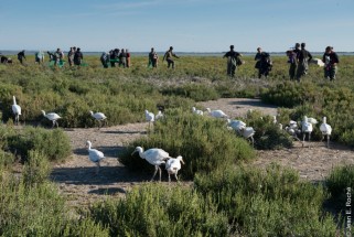 Ringing operation of ibis in the Scamandre reserve, Camargue, France