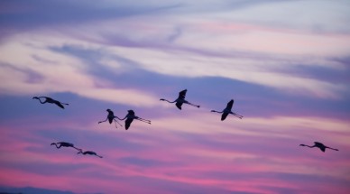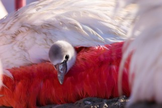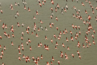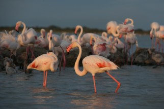 Greater Flamingo colony on the Étang du Fangassier, Camargue, France