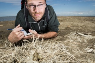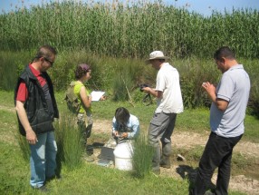 Prélèvement de parasites sur les bouses de vaches. Tour du valat. Camargue.
