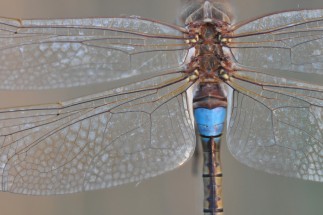 Male Calopterix splendens beating its wings to attract a female to the egg-laying site