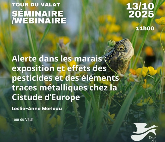 Lundi 13 octobre 2025 de 11h à 12h, Leslie-Anne Merleau,Tour du Valat, présenteront en salle Jean-Paul Taris un séminaire/webinaire intitulé : Alerte dans les marais : exposition et effets des pesticides et des éléments traces métalliques chez la Cistude d’Europe Résumé de l’intervention Ce séminaire est l’occasion de vous présenter une étude réalisée en Camargue et […]